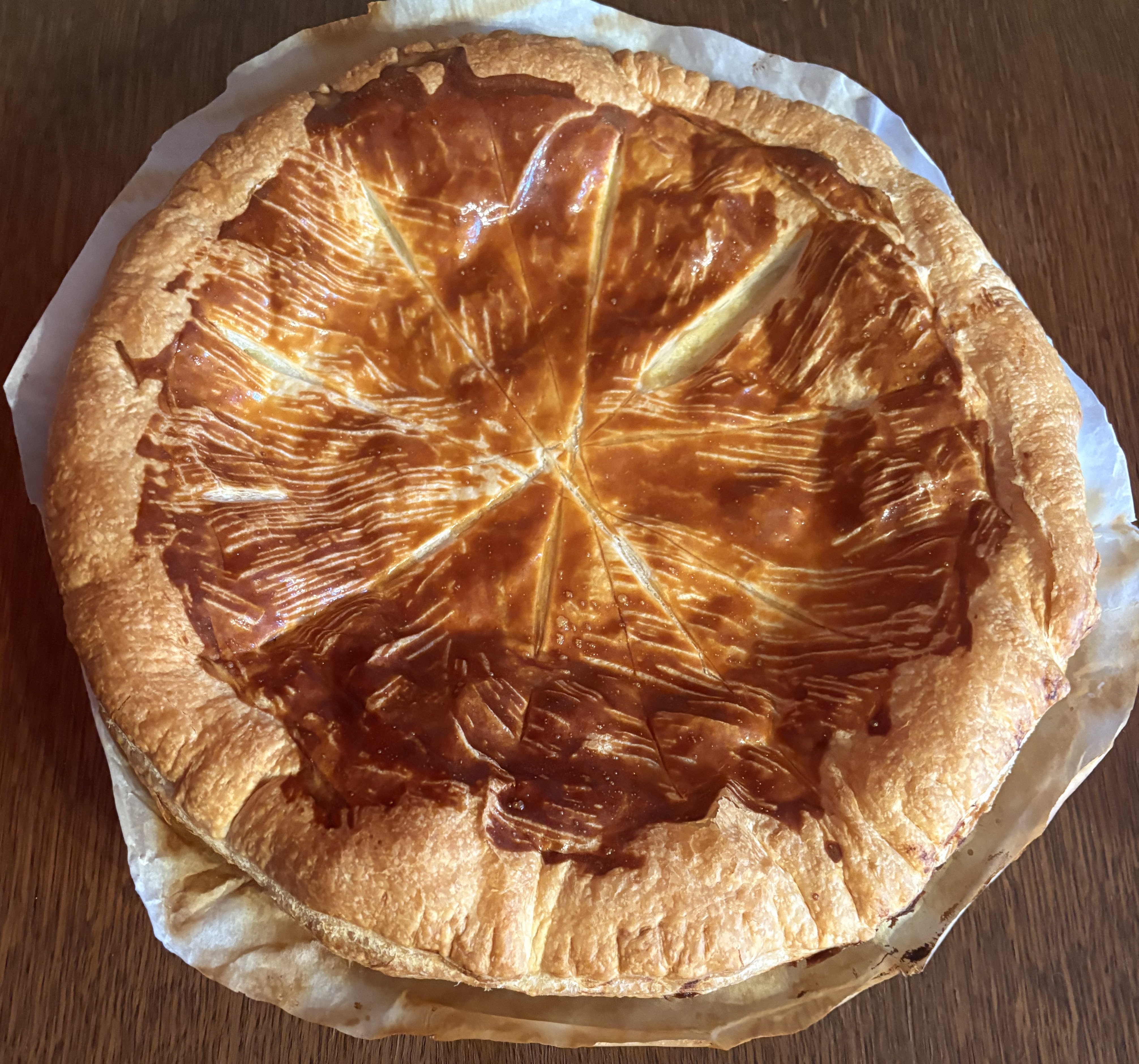 Déroulez une pâte feuilletée, dessinez un cercle à 2cm du bord.